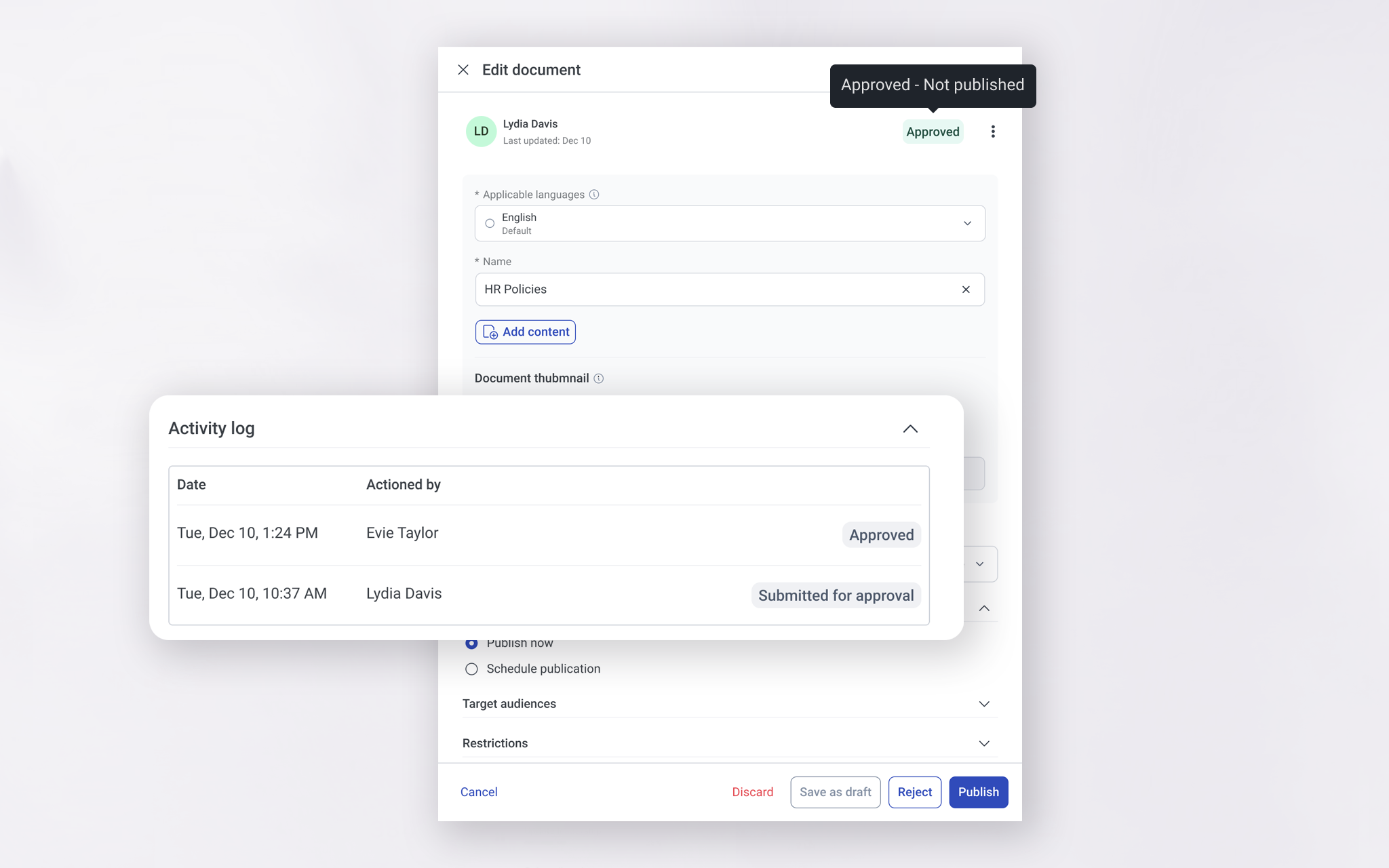 Every approval, rejection, and publish action is now traceable, time-stamped, and role-aware.
