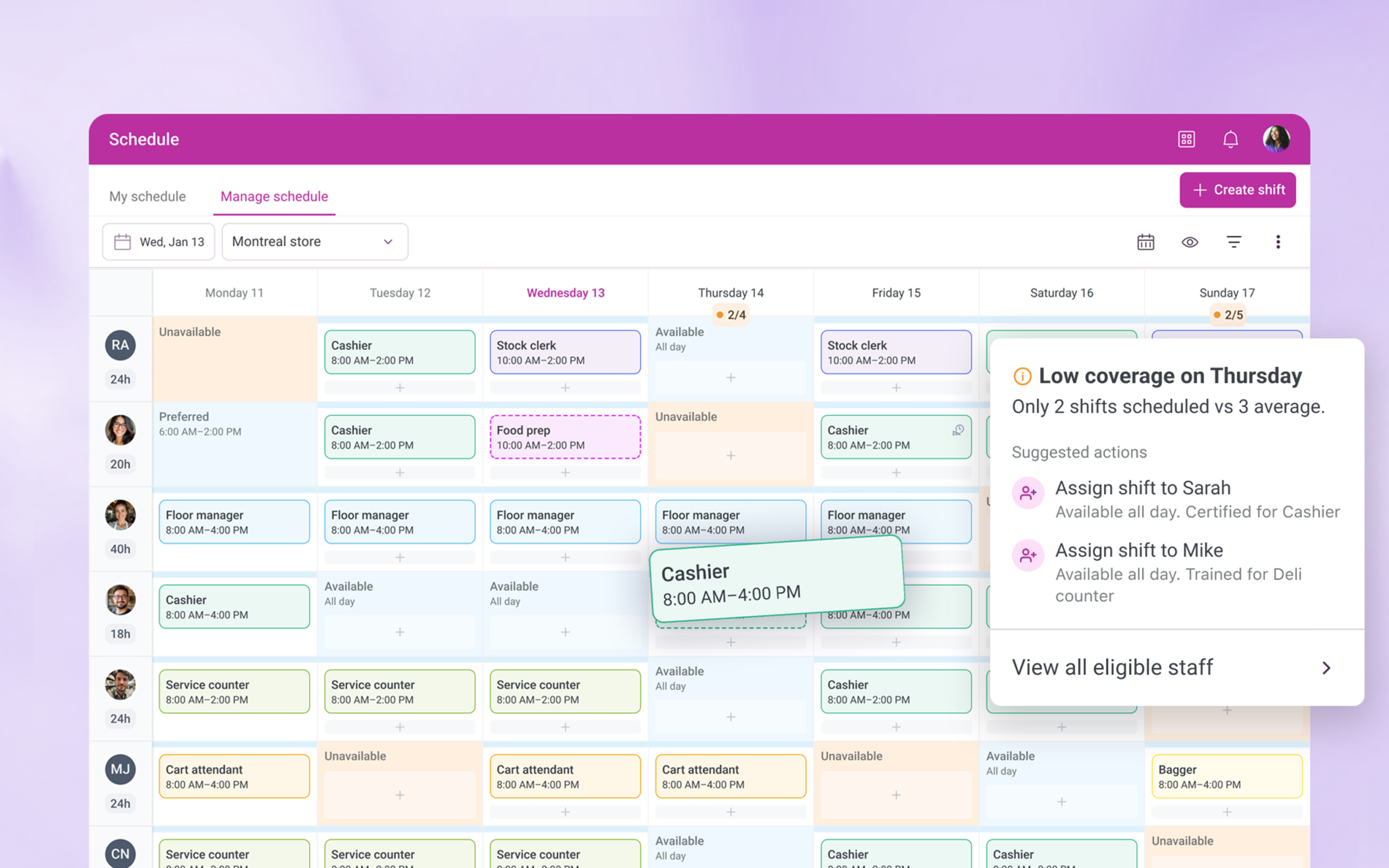 - See who is eligible for a shift