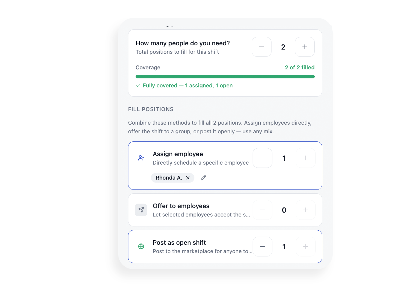 Framing them as parts of a shared staffing plan, each contributing to the same coverage goal, reduced confusion and helped managers combine strategies without guesswork.